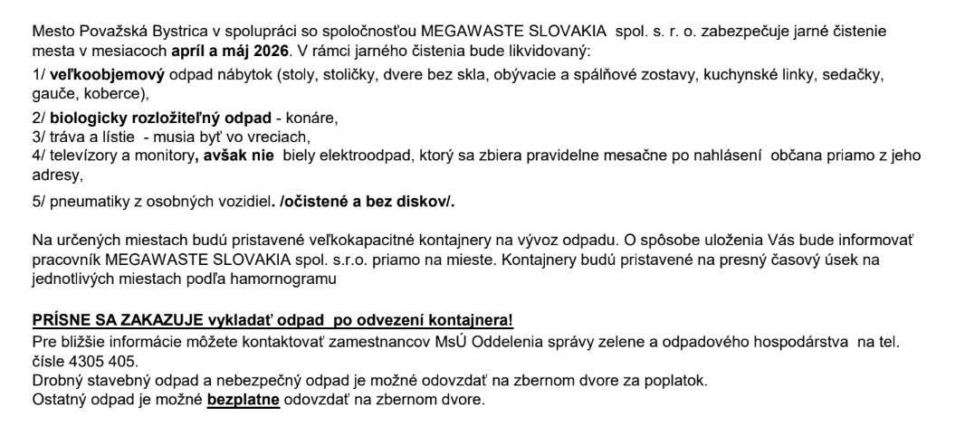 Oznam o jarnom pristavení veľkokapacitných kontajnerov